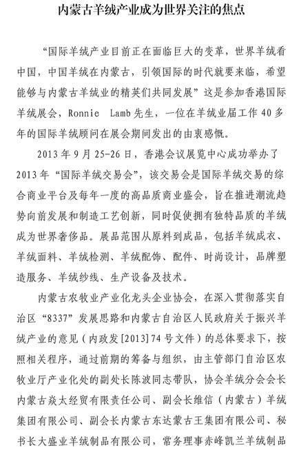 標題:內蒙古羊絨產業(yè)成為世界關注的焦點