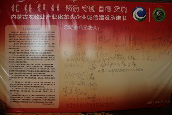 《內(nèi)蒙古農(nóng)牧業(yè)產(chǎn)業(yè)化龍頭企業(yè)誠(chéng)信建設(shè)承諾書》簽名墻