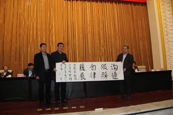 會上,內蒙古農(nóng)牧業(yè)產(chǎn)業(yè)化龍頭企業(yè)協(xié)會執(zhí)行會長林永亮向包頭市農(nóng)牧業(yè)產(chǎn)業(yè)化龍頭企業(yè)協(xié)會贈送牌匾,余佳榮會長和陸玉龍副會長代表協(xié)會接受牌匾。