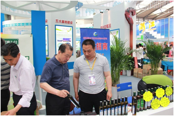 內(nèi)蒙古農(nóng)牧業(yè)廳產(chǎn)業(yè)化處處長王補(bǔ)在與協(xié)會(huì)執(zhí)行會(huì)長林永亮參觀展位