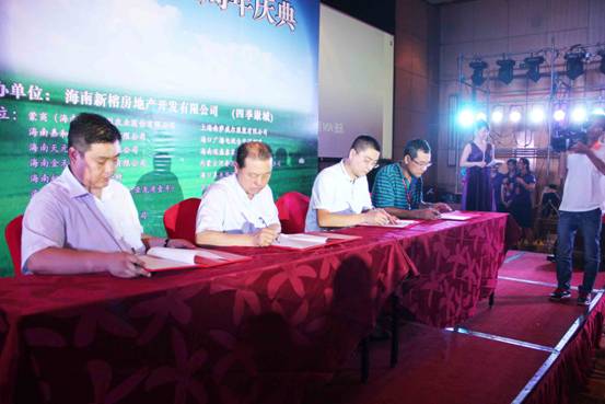 內蒙古農牧業(yè)產業(yè)化龍頭企業(yè)協(xié)會執(zhí)行會長林永亮、內蒙古新蒙商聯(lián)合會秘書長馬廣、海南省內蒙古商會執(zhí)行秘書長高華章、內蒙古保全農產品科技發(fā)展有限公司總經理白龍簽署了內蒙古海南綠色產品雙向輸出合作協(xié)議