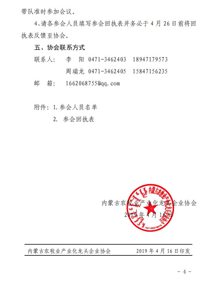 標(biāo)題:關(guān)于召開內(nèi)蒙古農(nóng)牧業(yè)產(chǎn)業(yè)化龍頭企業(yè)協(xié)會第三屆第一次理事會暨會員代表大會的通知