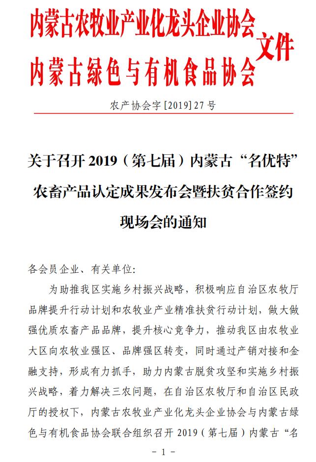 關(guān)于召開(kāi)2019(第七屆)內(nèi)蒙古“名優(yōu)特”農(nóng)畜產(chǎn)品認(rèn)定成果發(fā)布會(huì)暨扶貧合作簽約現(xiàn)場(chǎng)會(huì)的通知
