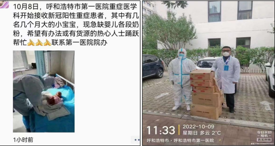 11、副會長單位-內蒙古伊利實業(yè)集團股份有限公司:伊利集團聞風而動,10:36看到求助信息,11:30完成援助,為呼和浩特市第一醫(yī)院重癥醫(yī)學科嬰兒送去各段奶粉。