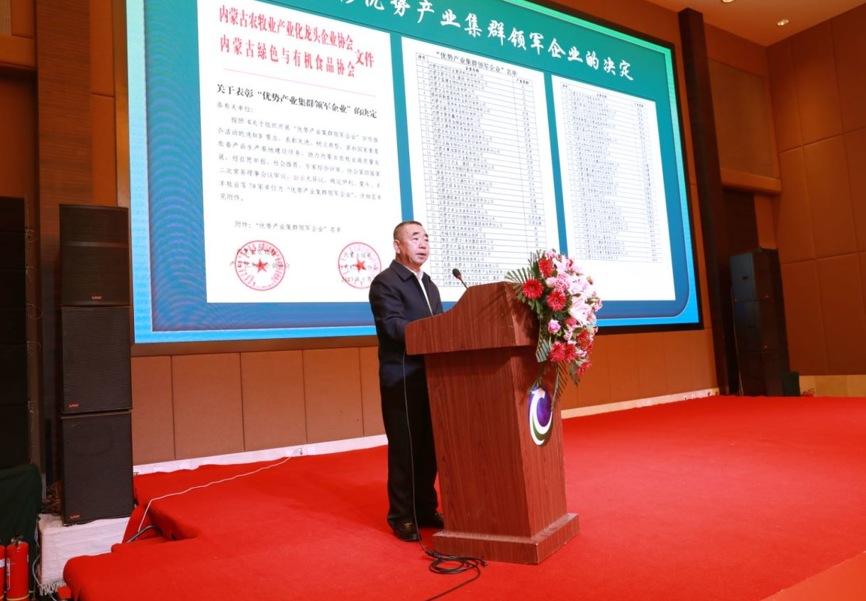 內(nèi)蒙古農(nóng)牧業(yè)產(chǎn)業(yè)化龍頭企業(yè)協(xié)會(huì)執(zhí)行秘書(shū)長(zhǎng)呼群宣讀表彰決定