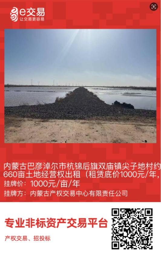 巴彥淖爾市首宗規(guī)范化農(nóng)村產(chǎn)權(quán)交易掛牌!杭錦后旗雙廟鎮(zhèn)尖子地村660畝高標(biāo)準(zhǔn)農(nóng)田經(jīng)營(yíng)權(quán)公開出租