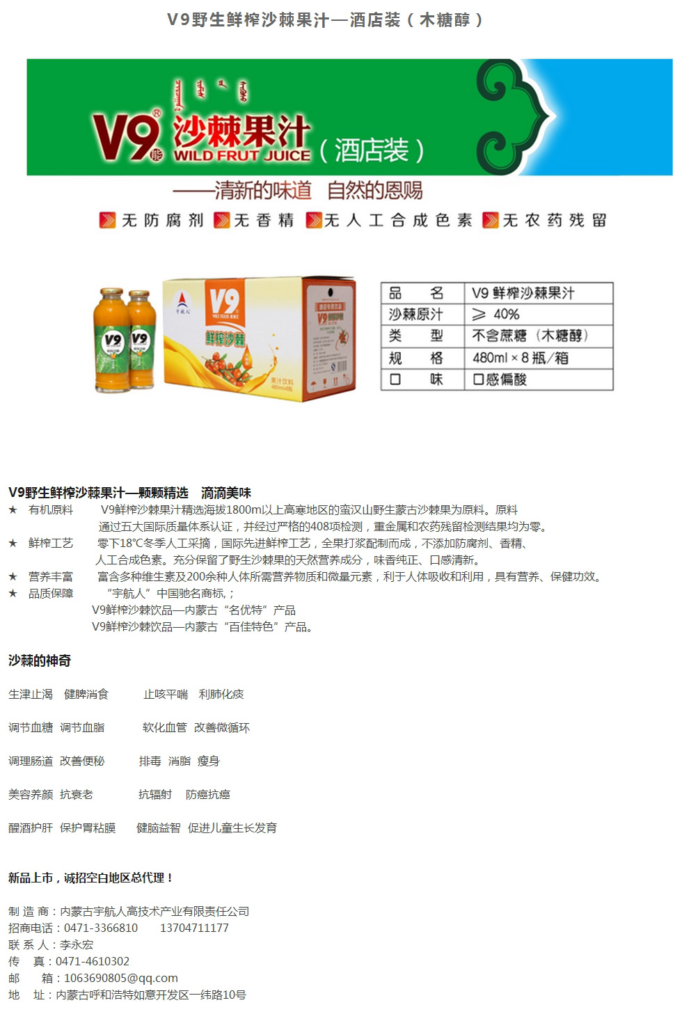 V9野生鮮榨沙棘果汁—酒店裝(木糖醇)
