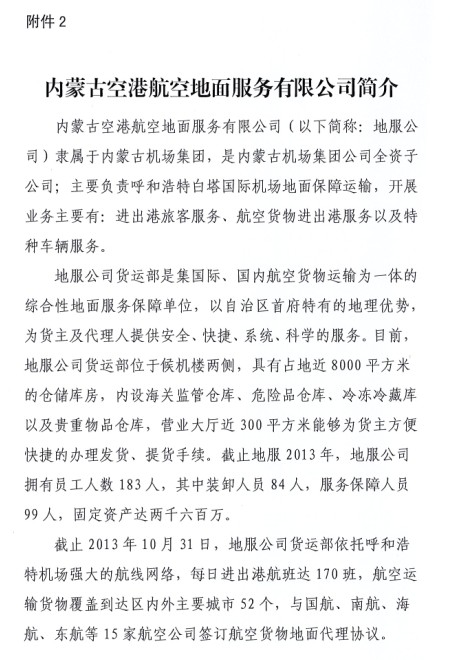 關(guān)于與內(nèi)蒙古空港航空地面服務(wù)有限公司開(kāi)展物流合作的通知