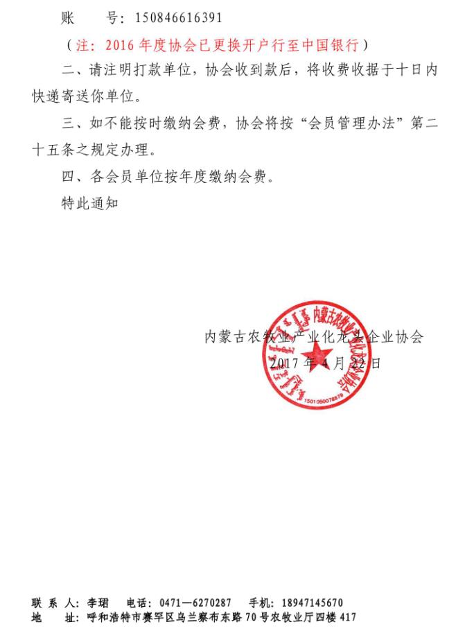 關于收繳會費的通知【2017】8號