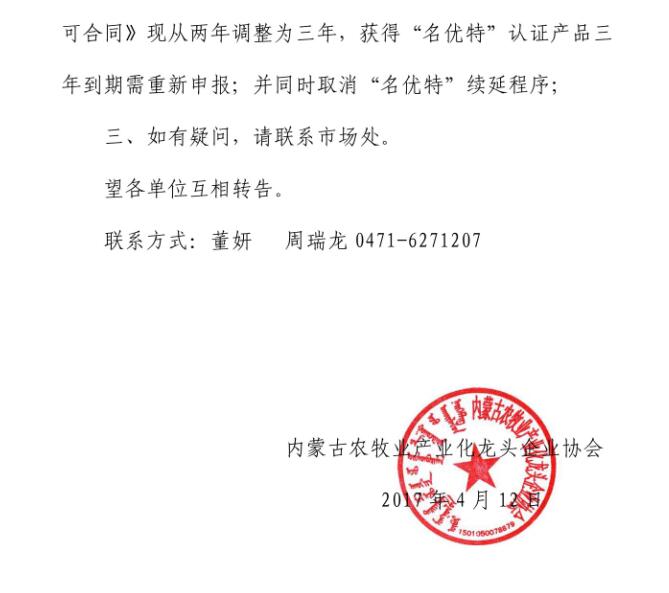 關于“名優(yōu)特”使用期限調(diào)整及取消“名優(yōu)特”續(xù)延程序的通知