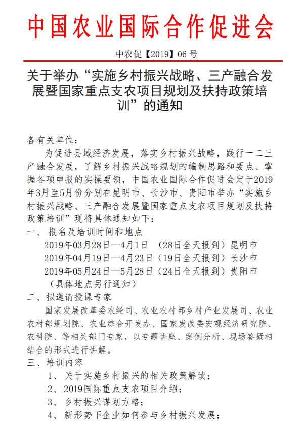關(guān)于舉辦“實施鄉(xiāng)村振興戰(zhàn)略、三產(chǎn)融合發(fā)展暨國家重點(diǎn)支農(nóng)項目規(guī)劃及扶持政策培訓(xùn)”的通知