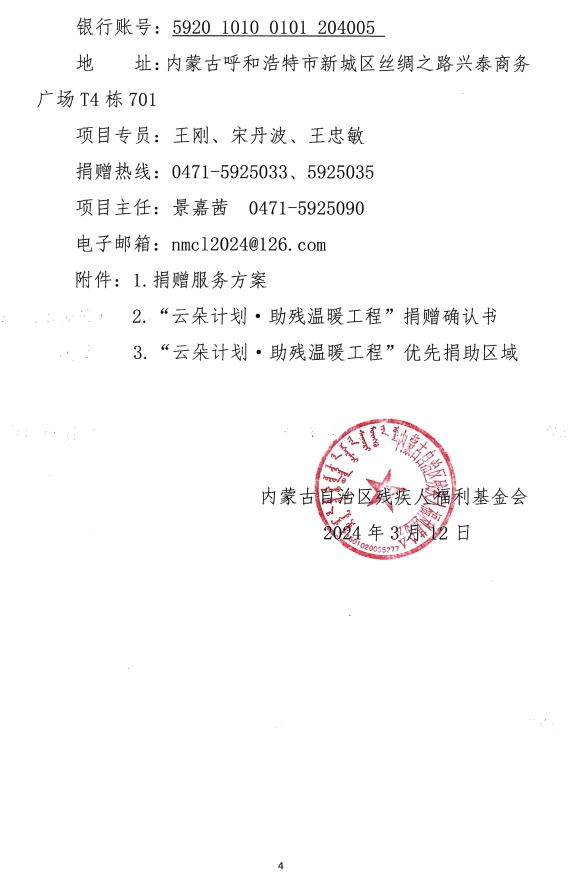 關(guān)于開展“云朵計(jì)劃·助殘溫暖工程’公益項(xiàng)目專項(xiàng)募捐的通知