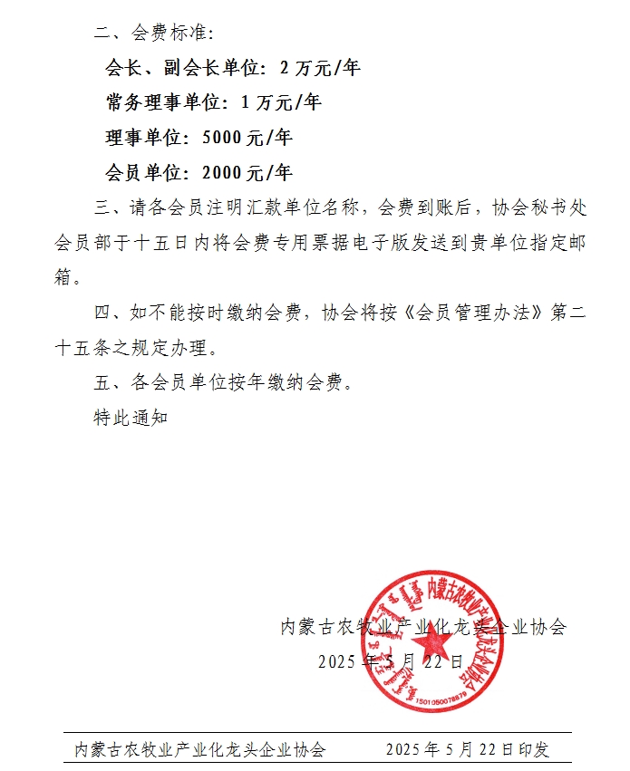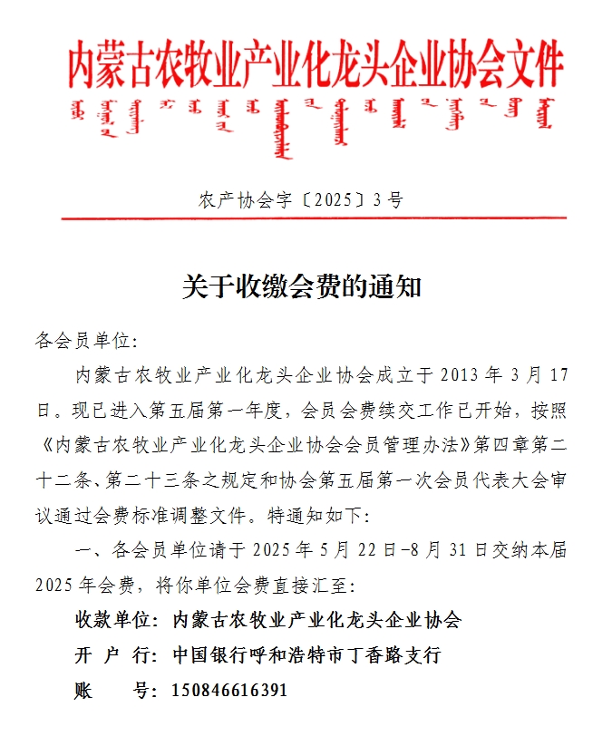 關于收繳會費的通知