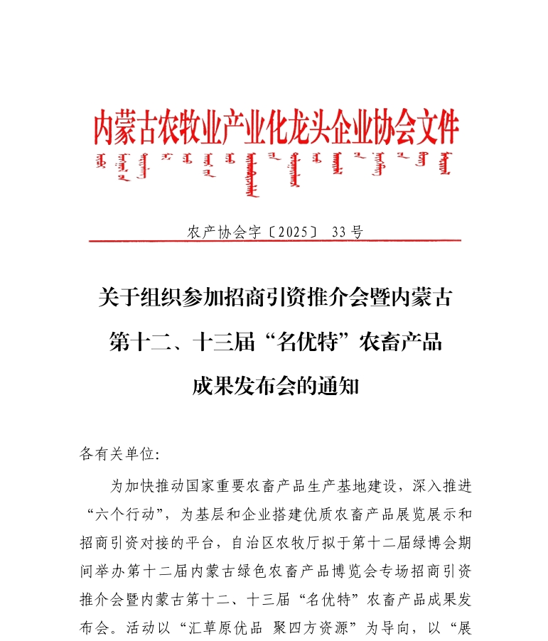 16  關(guān)于召開內(nèi)蒙古農(nóng)牧業(yè)產(chǎn)業(yè)化龍頭企...
