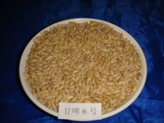 甘啤6號大麥屬二棱皮大麥,春性,生育期102天,中熟。幼苗半匍匐,莖稈彈性好,均勻株高80厘米。葉片開張角度大,冠層透光好,抽穗時株型松緊中等,穗全抽出,閉穎授粉,穗長方形。灌漿后期穗軸略有彎曲,穗層整潔,均勻穗長8.0厘米,穗莖節(jié)26.5厘米。疏穗型,單株有效分蘗2.5個,長芒,黃色鋸齒。穗粒數(shù)23粒左右,千粒重4550克,蛋白質(zhì)含量8.710.5%,選粒率(2.5毫米)8593.0%。粒色淡黃,種皮薄,粒徑大,皺紋細膩,籽粒卵形,粉質(zhì);抗倒伏,抗干熱風,抗條紋病和其它大麥病害。