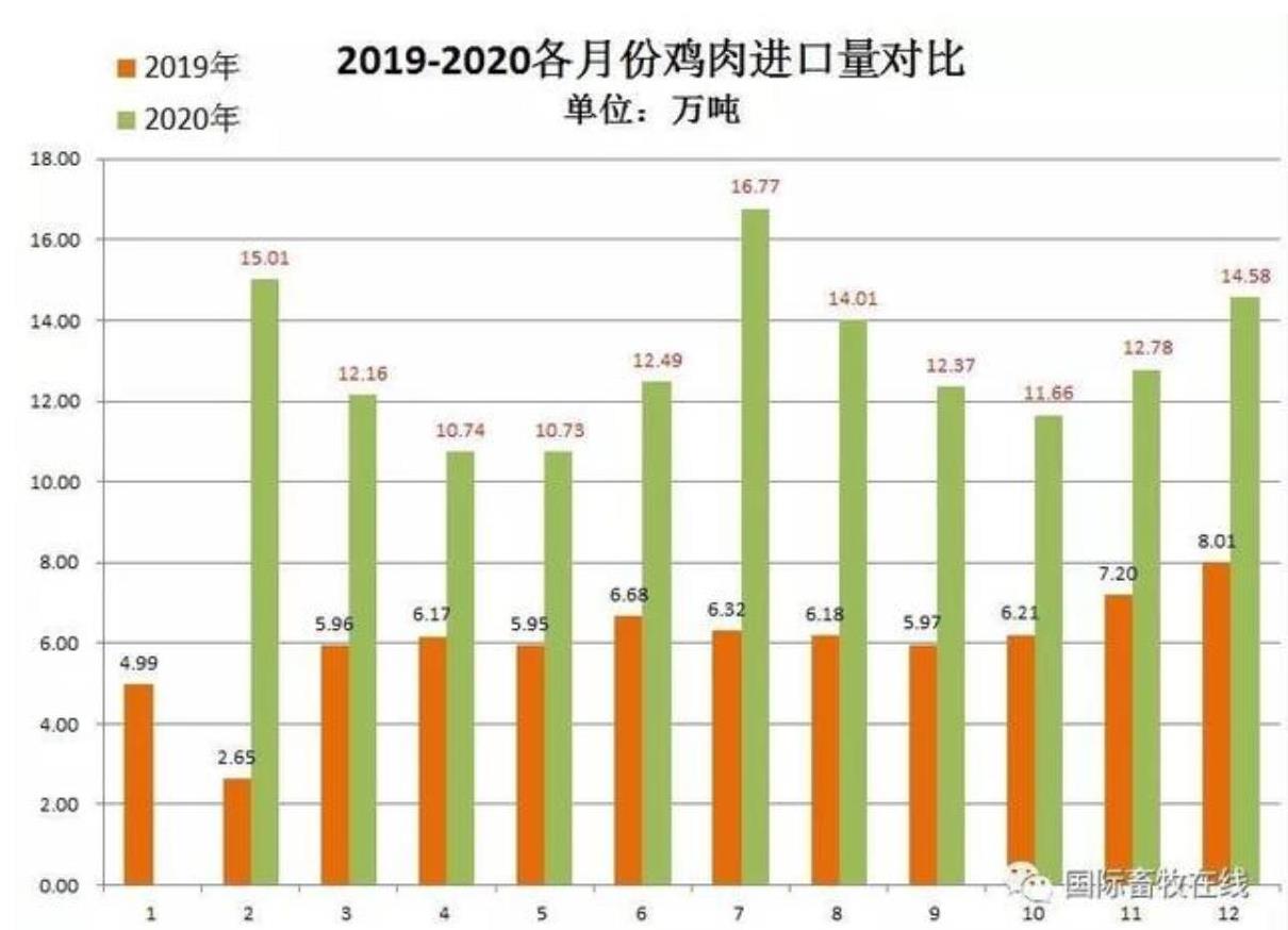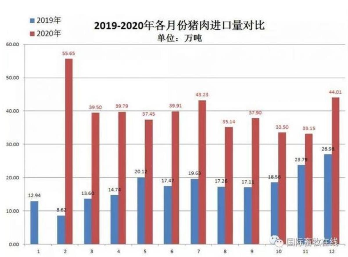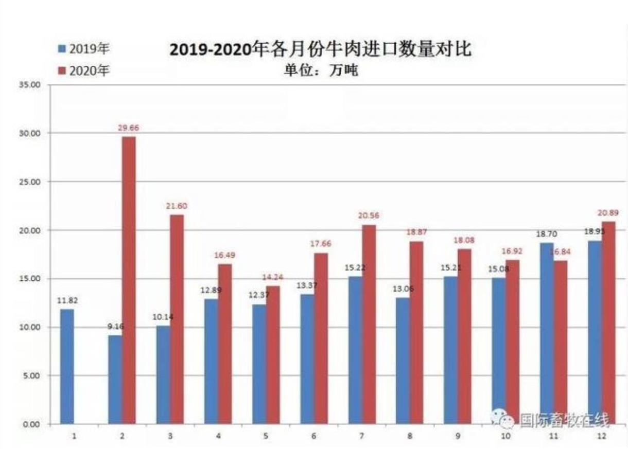 備注:20202月份數(shù)值為1-2月累計(jì)數(shù)據(jù),圖表來源于國際畜牧在線)